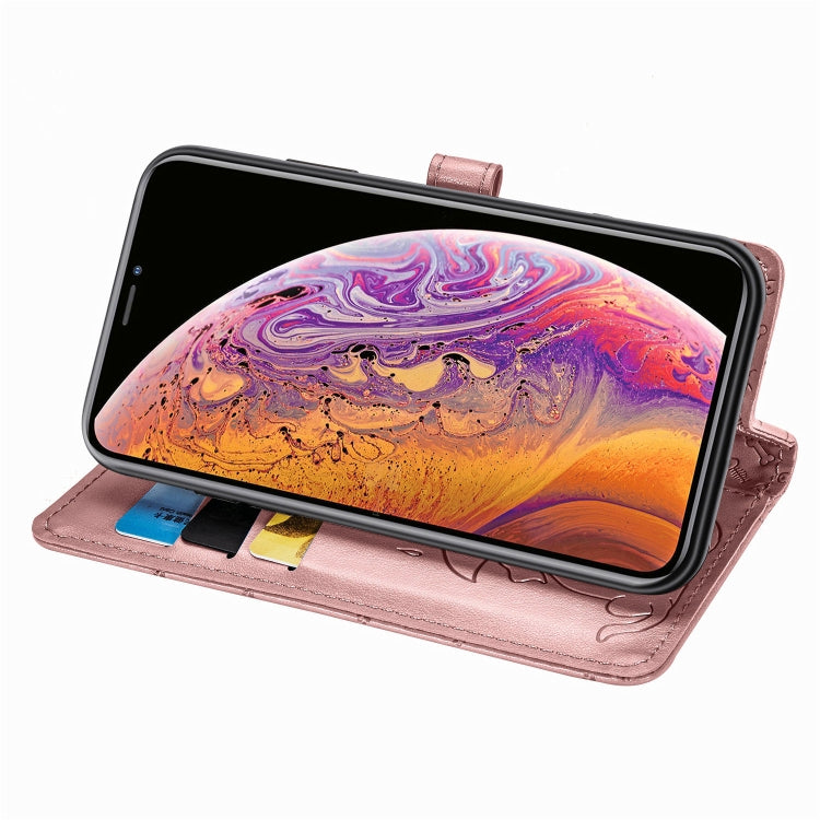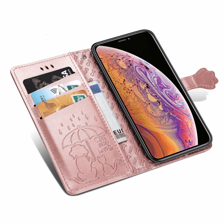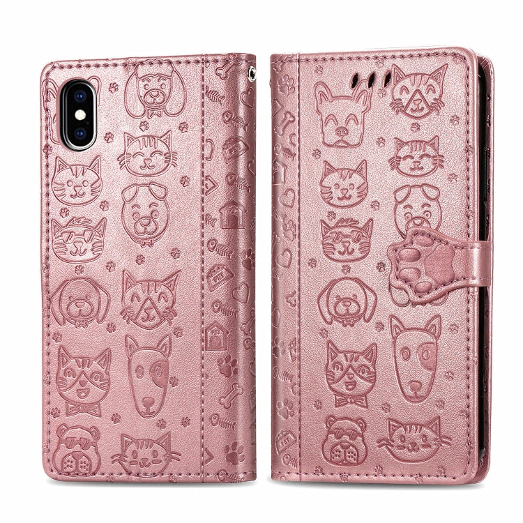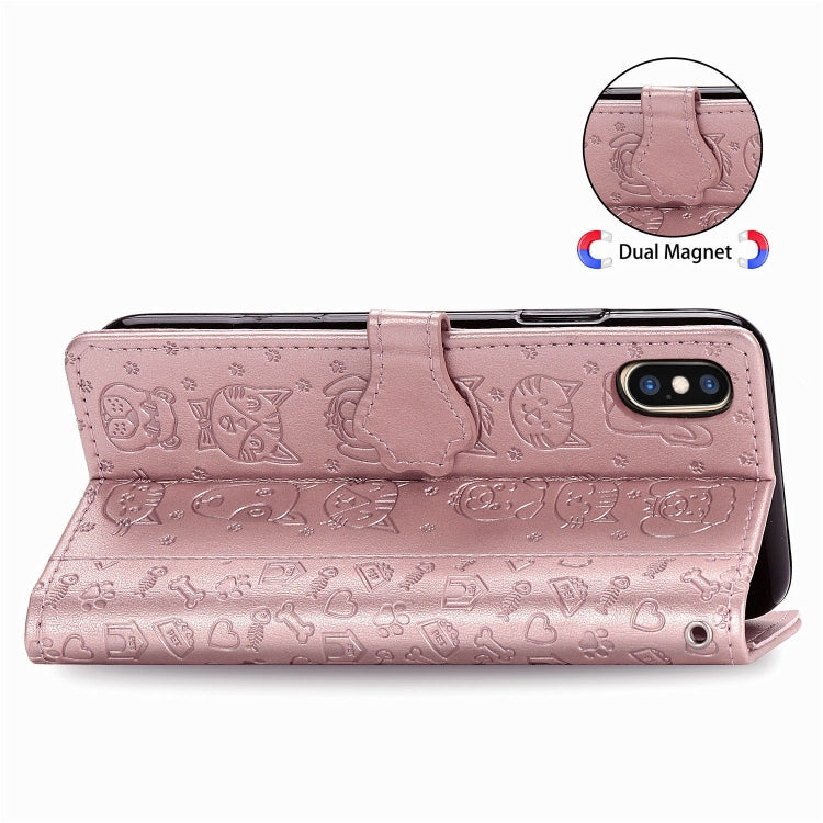 For iPhone XS Max Cute Cat and Dog Embossed Horizontal Flip PU Leather Case with Holder / Card Slot / Wallet / Lanyard(Rose Gold)