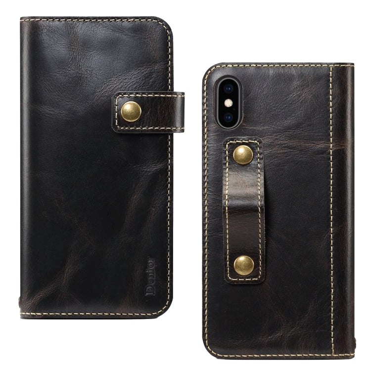 For iPhone XS Max Denior Oil Wax Cowhide DK Magnetic Button Horizontal Flip Leather Case with Holder & Card Slots & Wallet(Black)