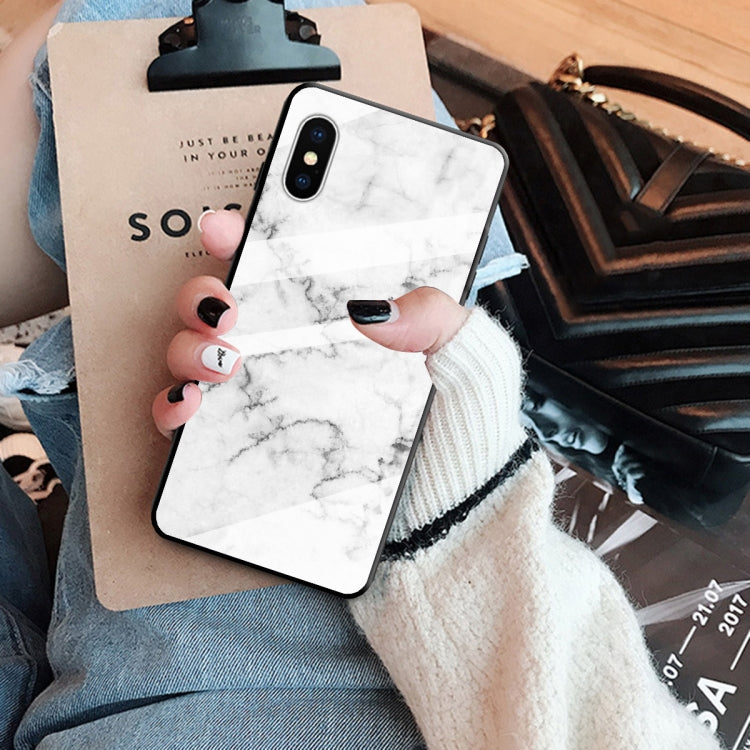 For iPhone XS Max Marble Pattern Glass Protective Case(White)