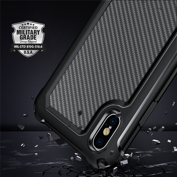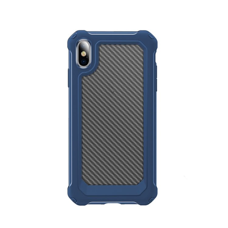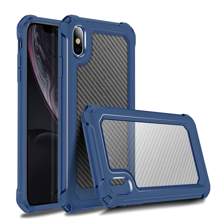 For iPhone XS Max Transparent Carbon Fiber Texture Rugged Full Body TPU+PC Scratch-Resistant Shockproof Case(Blue)
