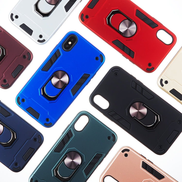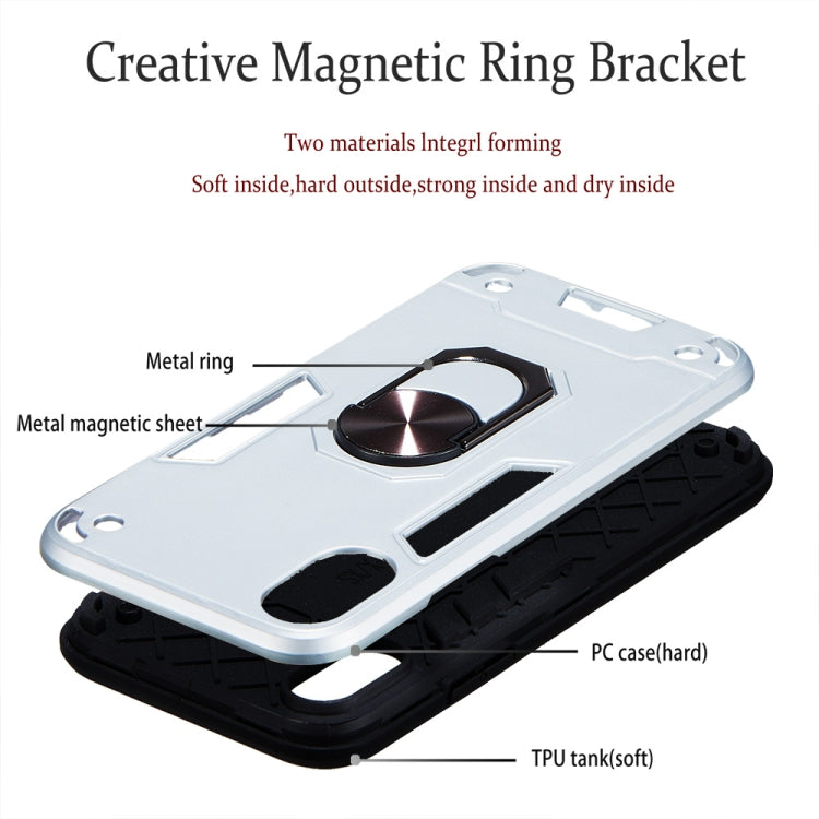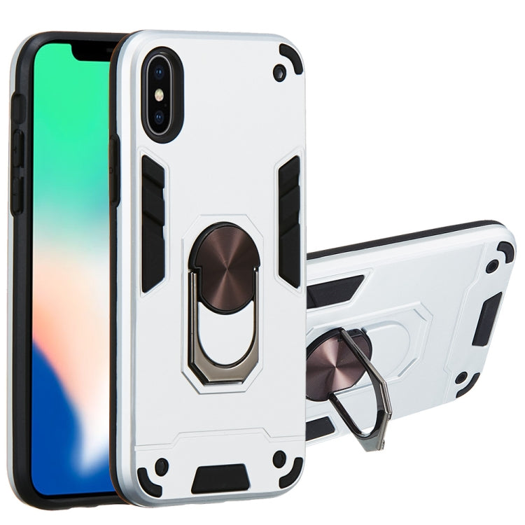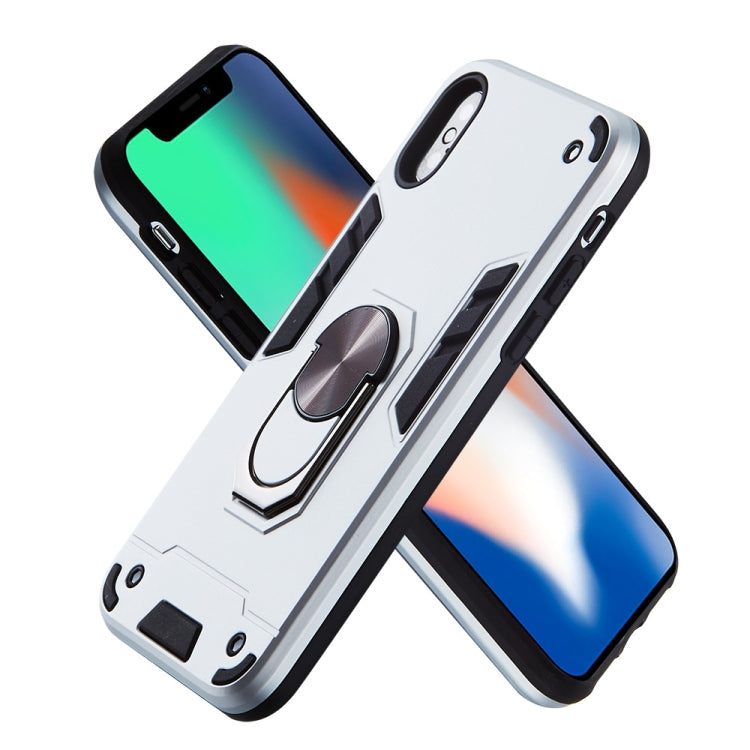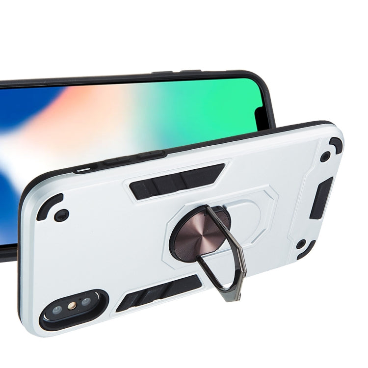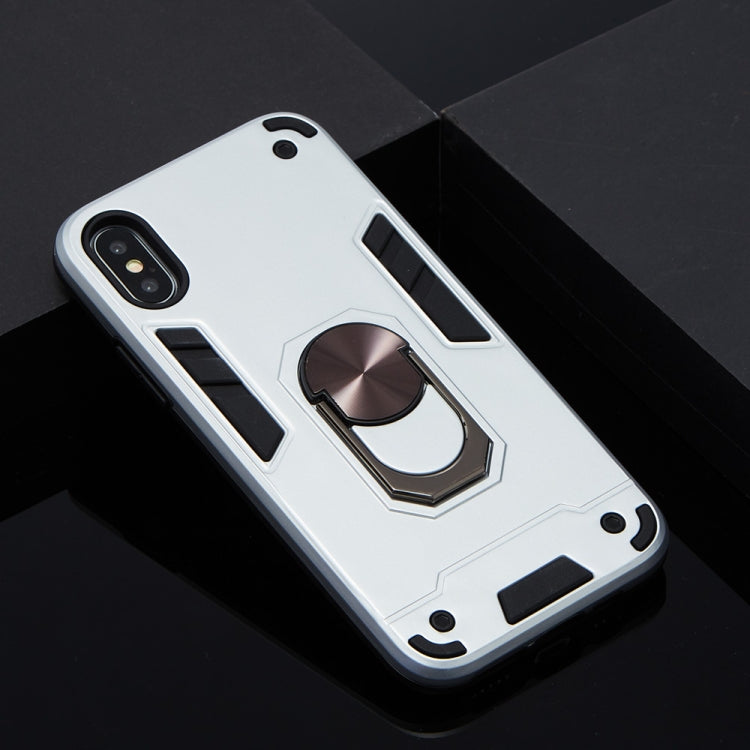 For iPhone XS / X 2 in 1 Armour Series PC + TPU Protective Case with Ring Holder(Silver)