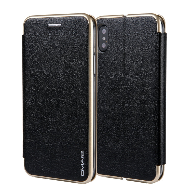For iPhone XS / X CMai2 Linglong Series PC+PU Horizontal Flip Leather Case with Holder & Card Slot(Black)