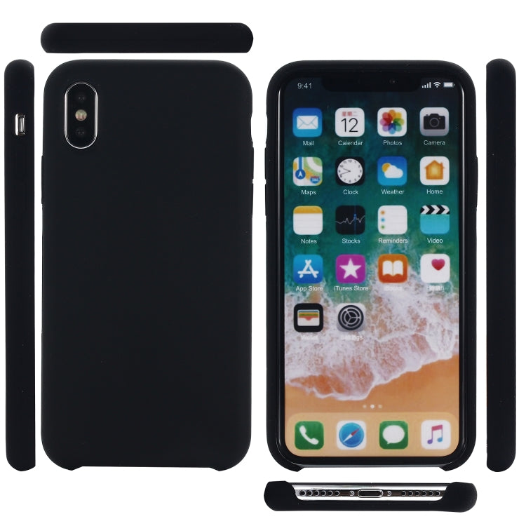 Four Corners Full Coverage Liquid Silicone Protective Case Back Cover for iPhone X / XS(Black)