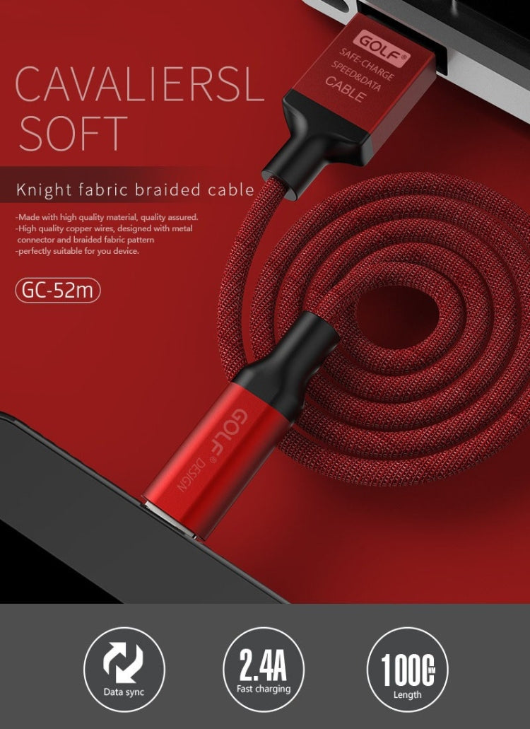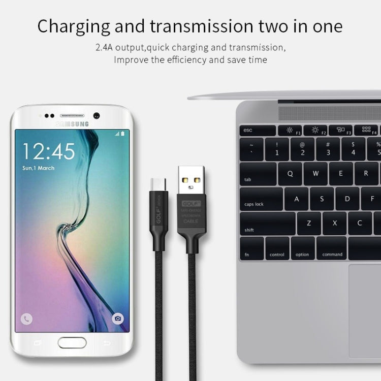 GOLF GC-52m Fabric Weave Micro USB to USB 2.4A Charging USB Data Cable Fast Charging USB Data Cable for Galaxy, LG, Huawei, Xiaomi and other Smartphones