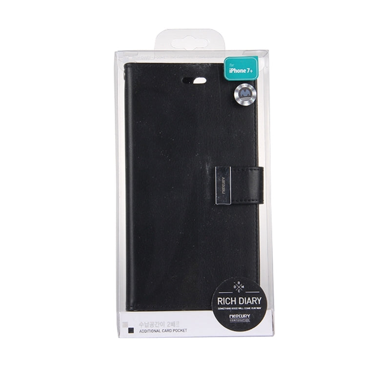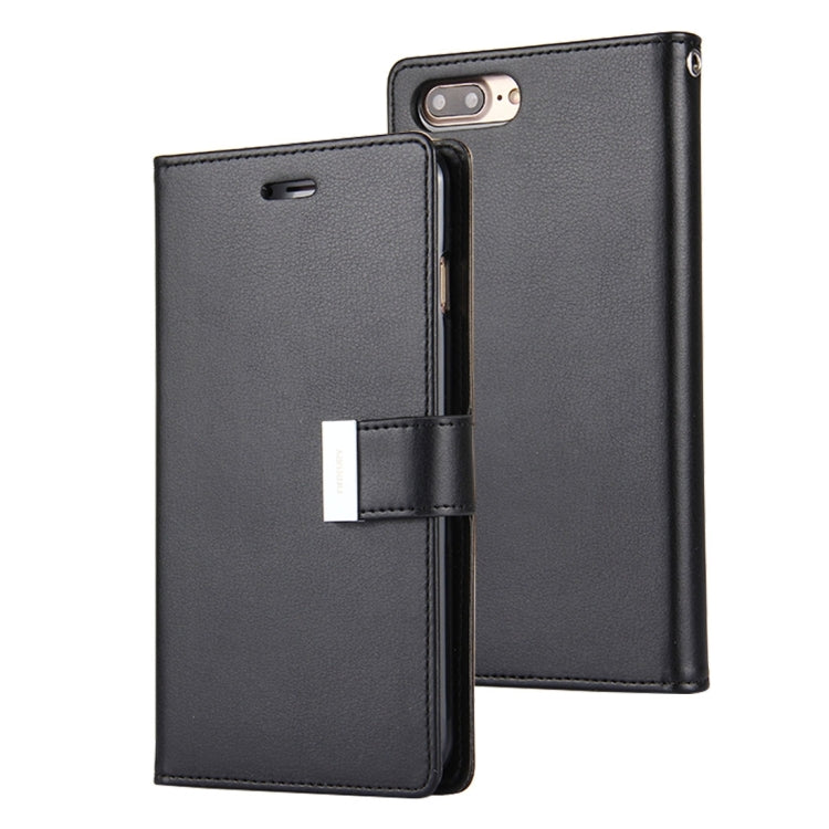 GOOSPERY RICH DIARY for iPhone 8 Plus & 7 Plus PU + TPU Crazy Horse Texture Horizontal Flip Leather Case with Card Slots & Wallet(Black)
