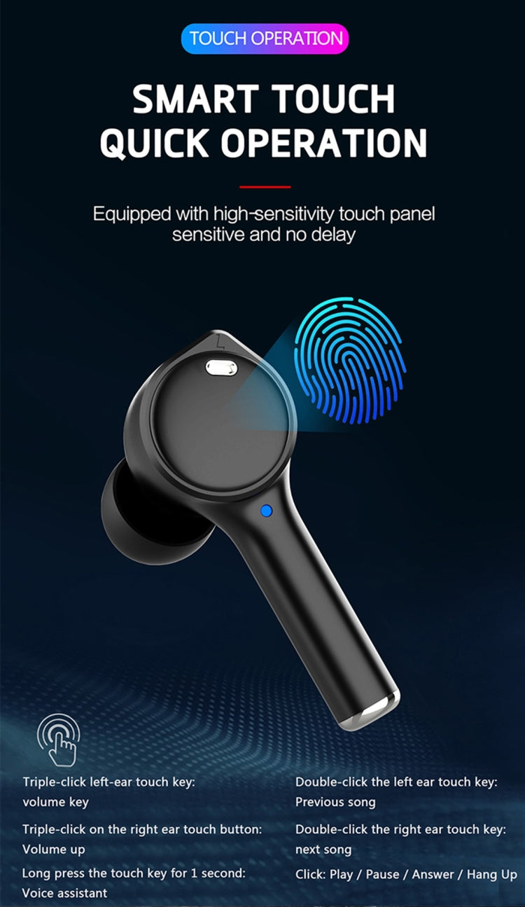 HAMTOD A2 TWS Bluetooth 5.0 Wireless Active Noise Cancelling Earphone(Black)