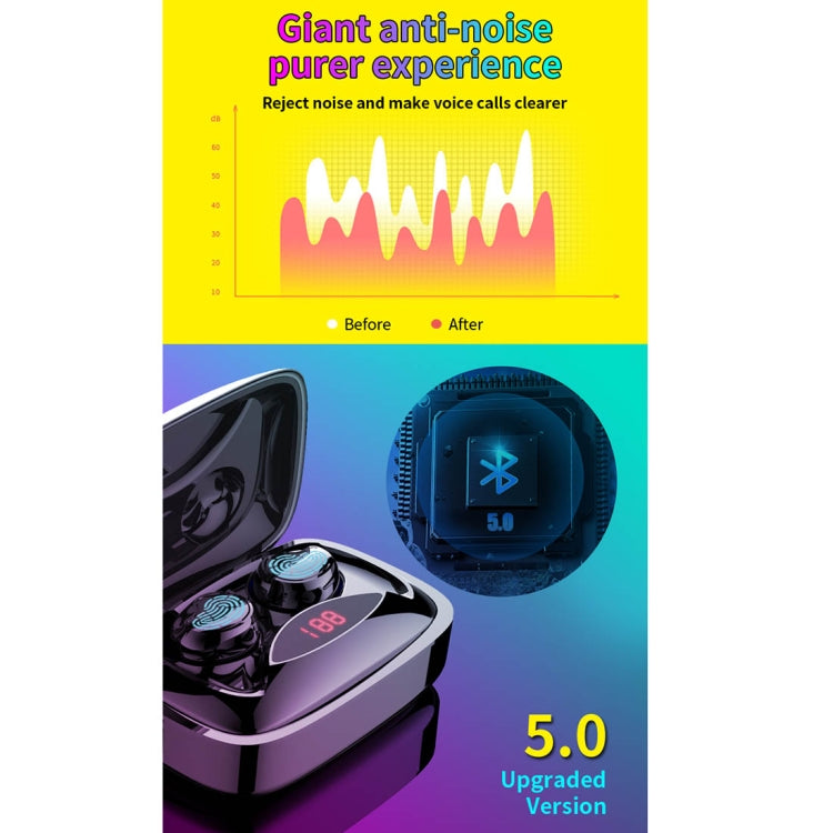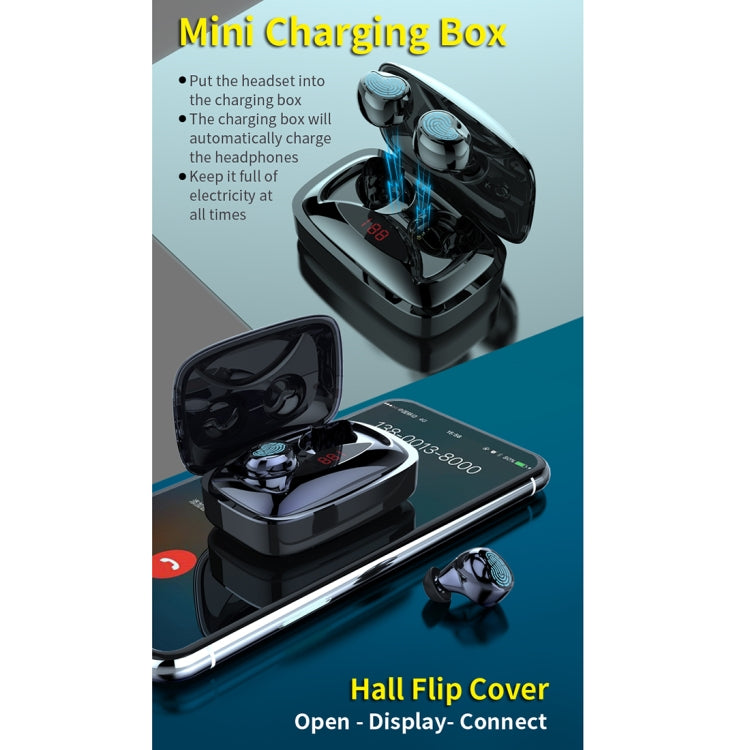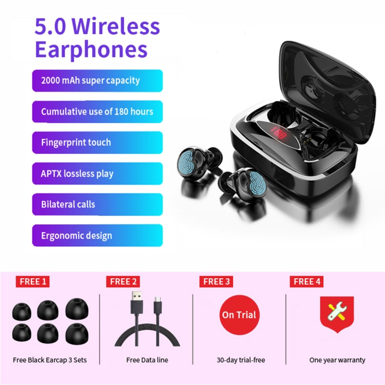 HAMTOD X29 TWS Bluetooth 5.0 Fingerprint Touch Wireless Bluetooth Earphone with Charging Box & Intelligent Digital Display, Support Binaural Call & Bluetooth Auto Connect(Black)