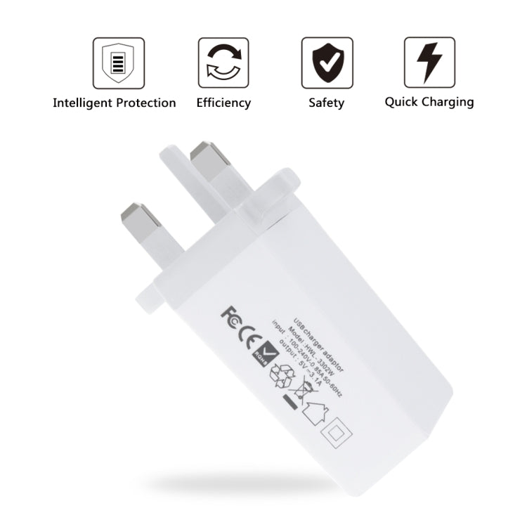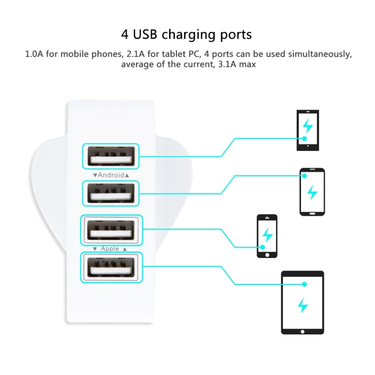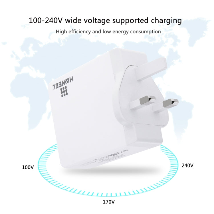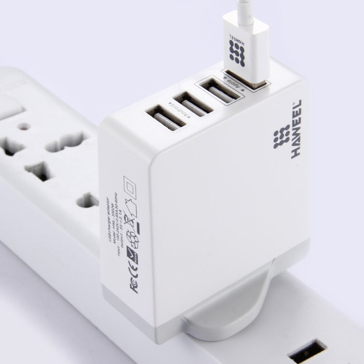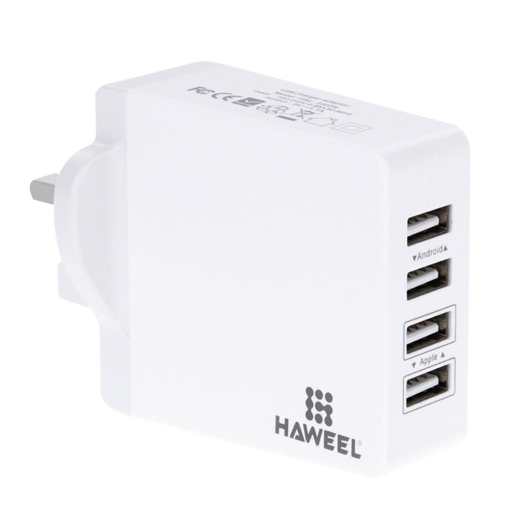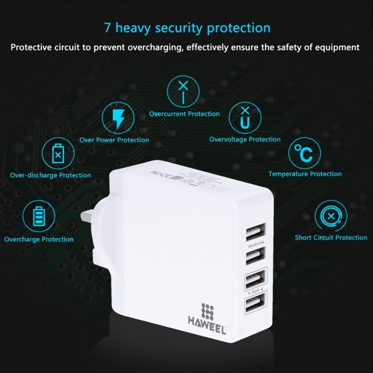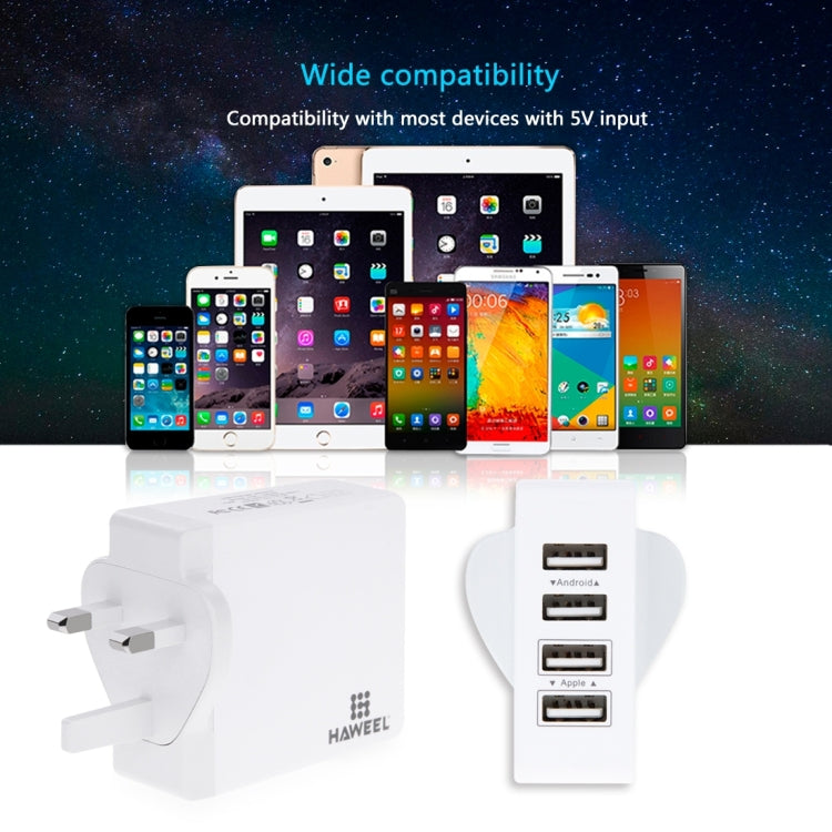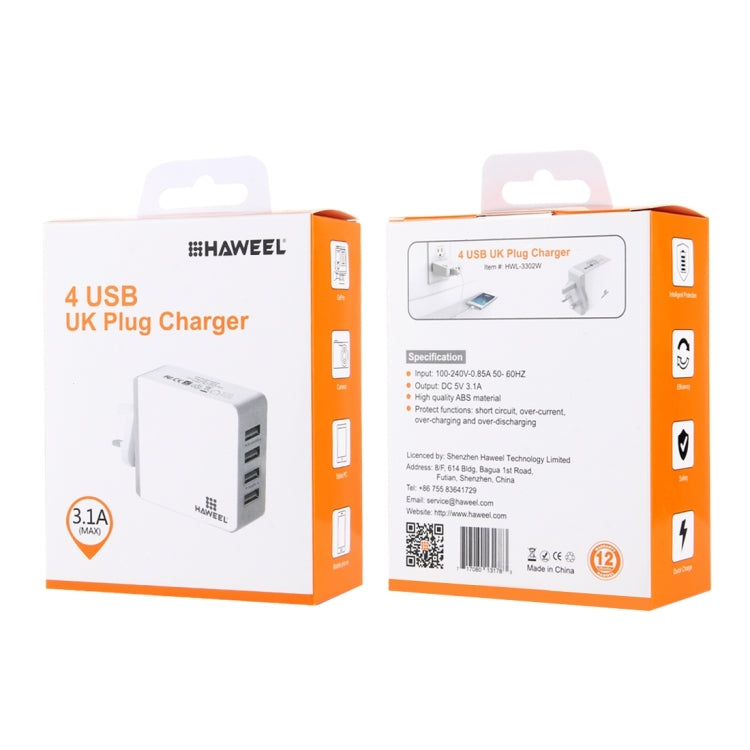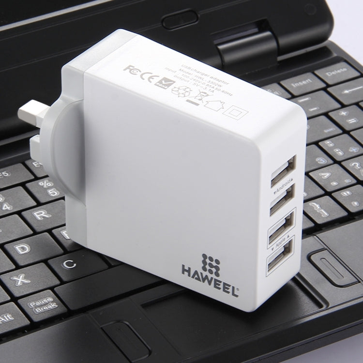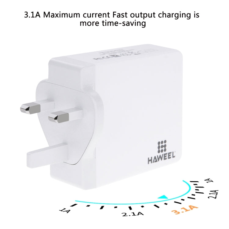 HAWEEL 4 Ports USB Max 3.1A Travel Wall Charger, UK Plug, with CE & RoHS Certification, For iPhone, iPad, Galaxy, Huawei, Xiaomi, LG, HTC and other Smart Phones(White)