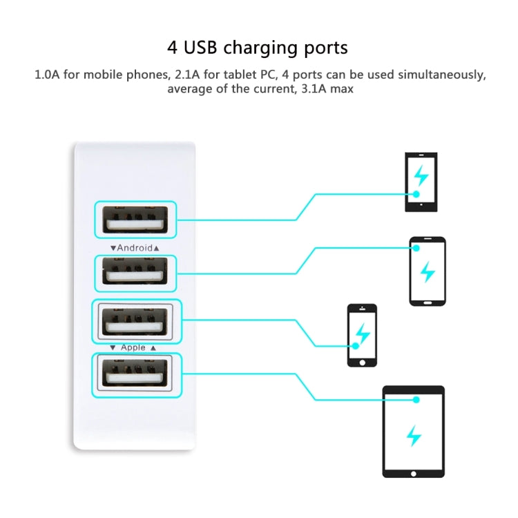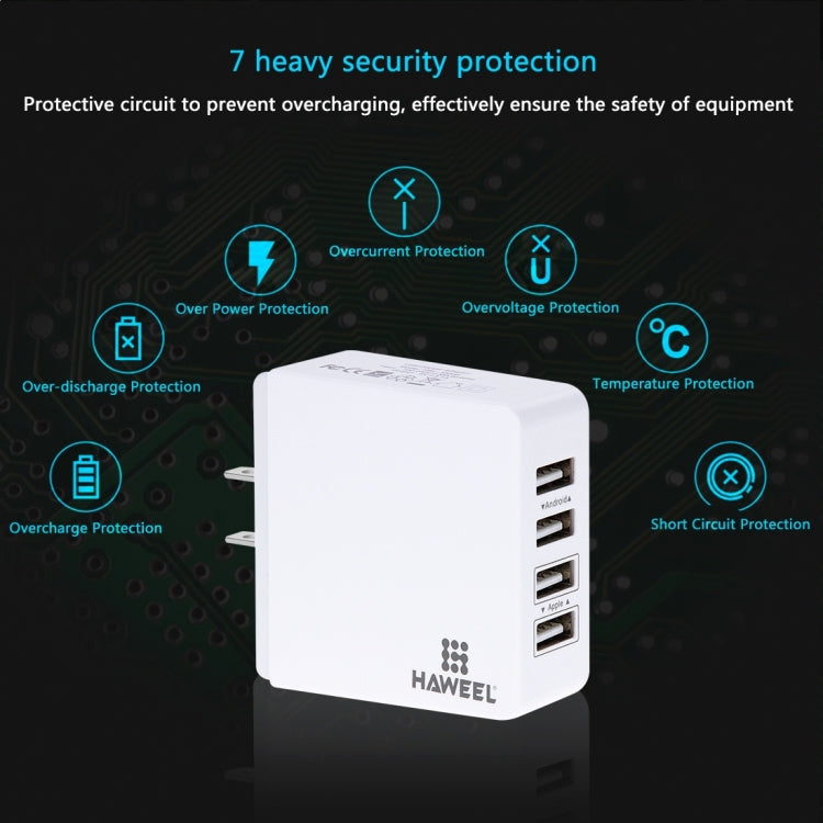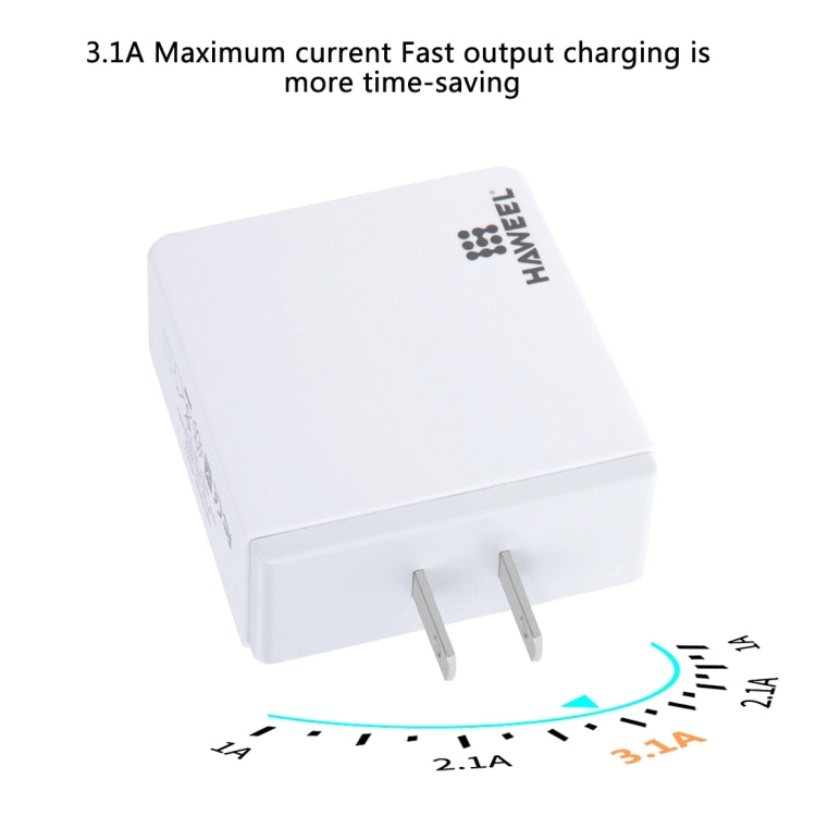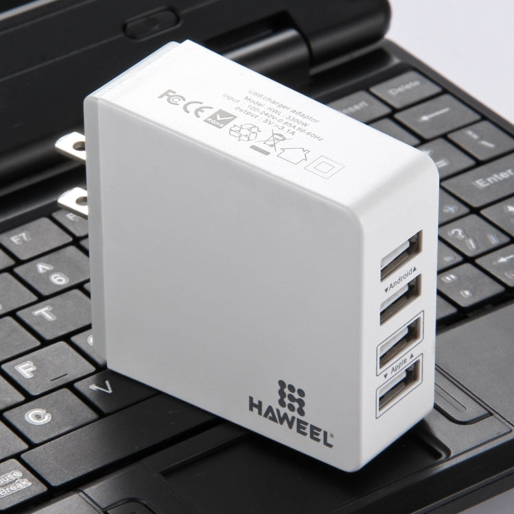 HAWEEL 4 Ports USB Max 3.1A Travel Wall Charger, US Plug, For iPhone, iPad, Galaxy, Huawei, Xiaomi, LG, HTC and other Smart Phones(White)