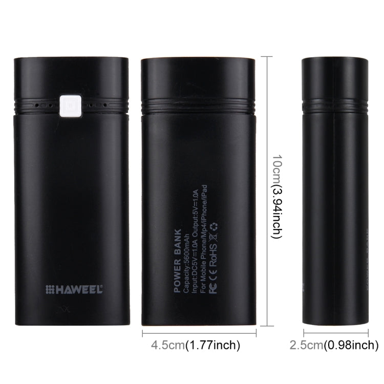 HAWEEL DIY 2x 18650 Battery (Not Included) 5600mAh Power Bank Shell Box with USB Output & Indicator, For iPhone, Galaxy, Sony, HTC, Google, Huawei, Xiaomi, Lenovo and other Smartphones(Black)