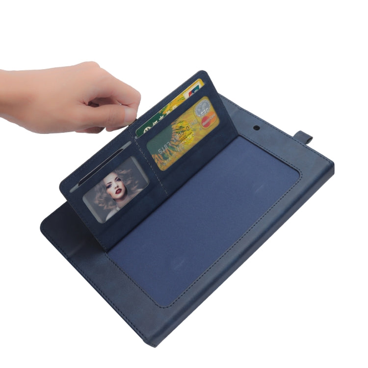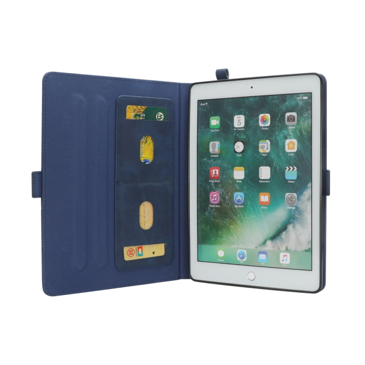 Horizontal Flip Double Holder Leather Case for iPad Pro 12.9 (2017) / (2015), with Card Slots & Photo Frame & Pen Slot (Blue)