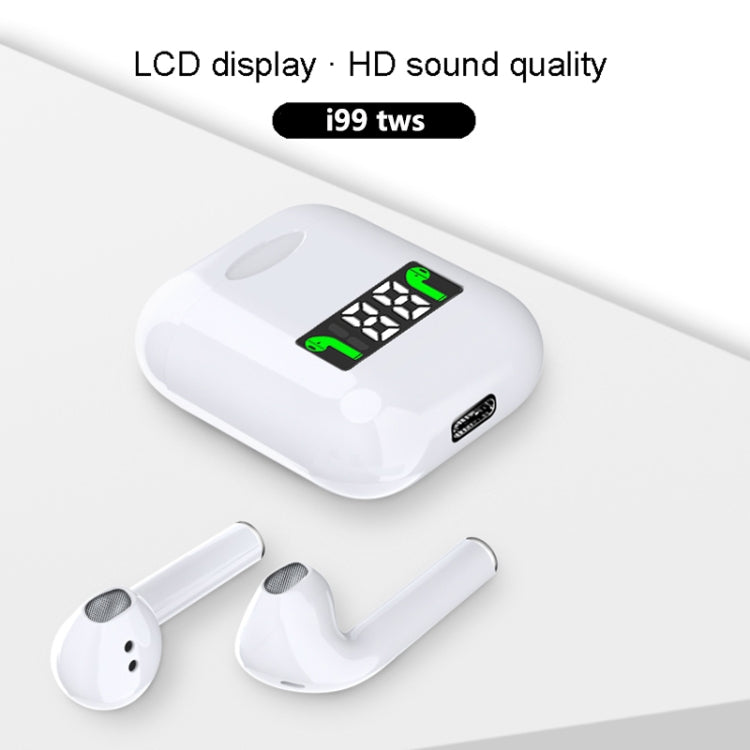 i99 TWS Wireless Earphones Noise Canceling Headphones With LED Power Display Headset, Support Wireless Charging With Mic
