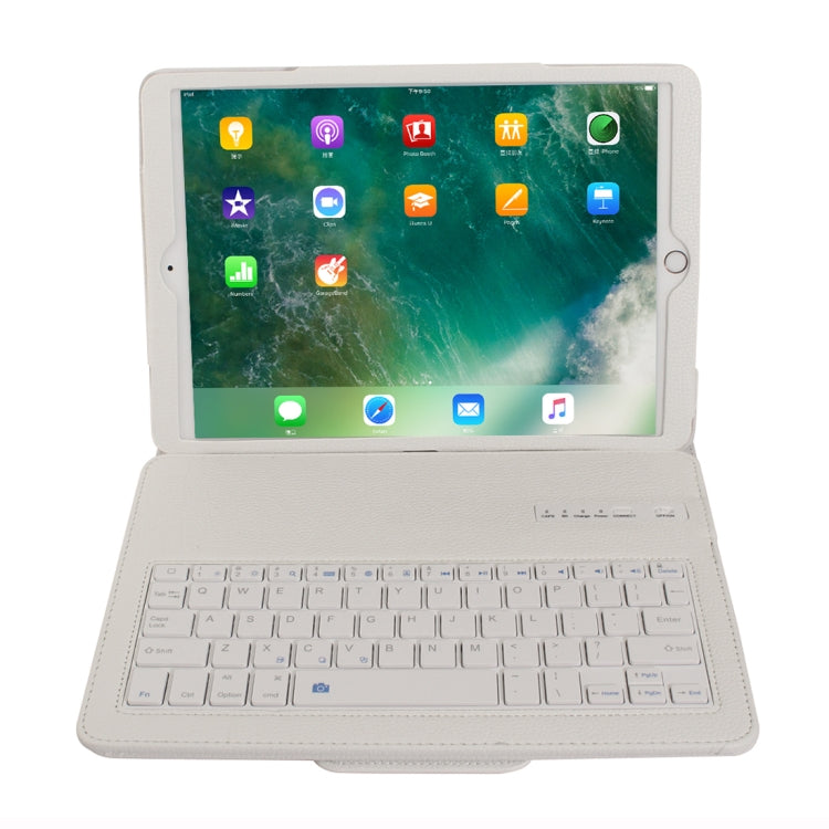 IP09 For iPad 10.2 inch Litchi Texture Detachable ABS Bluetooth Keyboard Leather Case with Stand Function (White)