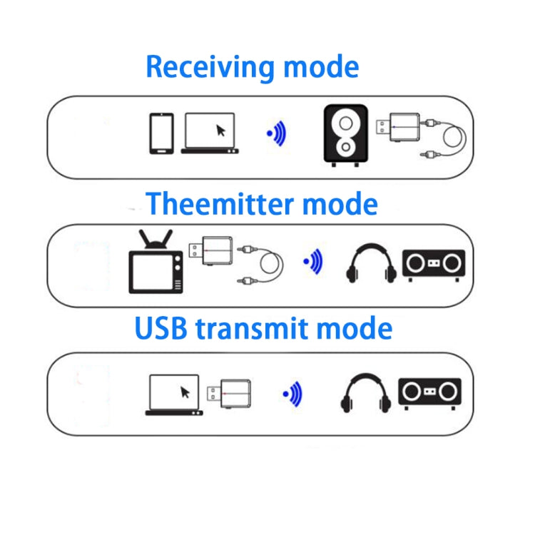 JEDX-169P USB Wireless Audio 3-in-1 Bluetooth 5.0 Receiver Transmitter TV Computer Audio Free Cable(Black)