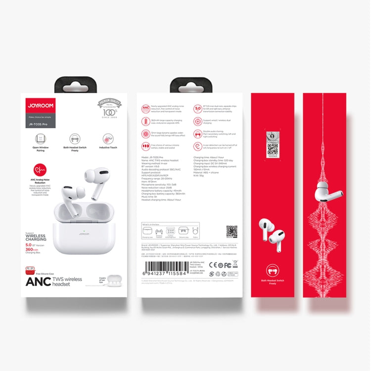 JOYROOM JR-T03S Pro Bluetooth 5.0 ANC TWS Noise Reduction Bluetooth Earphone with Charging Box