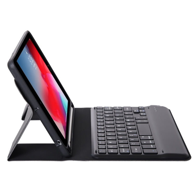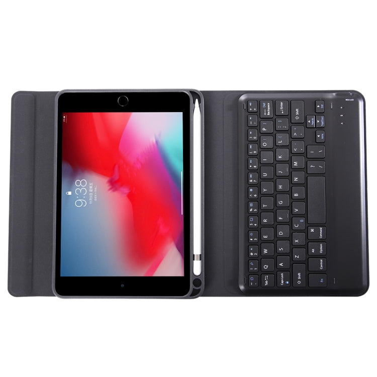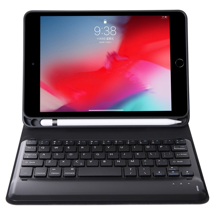 K04B Bluetooth 3.0 Ultra-thin One-piece Bluetooth Keyboard Leather Case for iPad mini 5, with Pen Slot & Holder (Black)