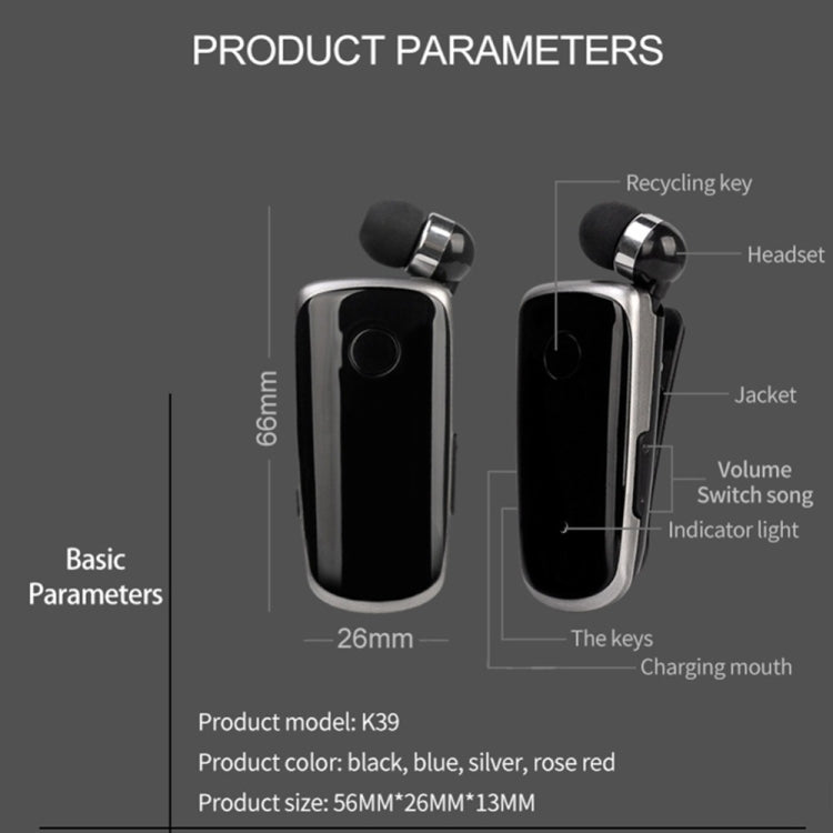 K39 Wireless Bluetooth Headset CSR DSP chip In-Ear Vibrating Alert Wear Clip Hands Free Earphone (Blue)