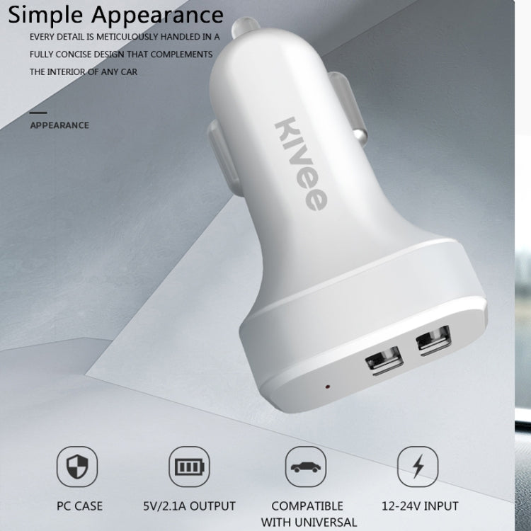 KIVEE KV-UT501 2.1A Dual USB Car Charger (White)