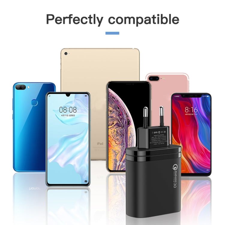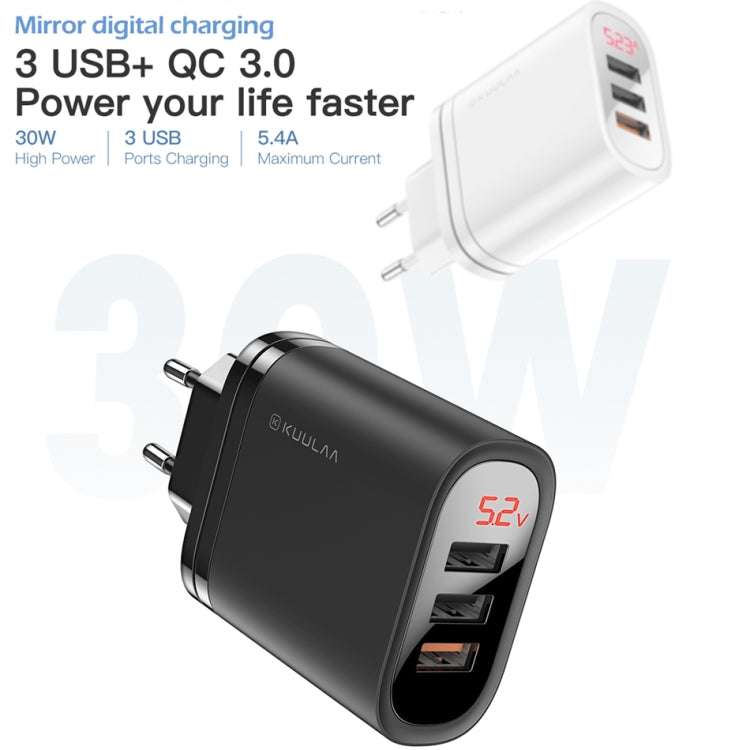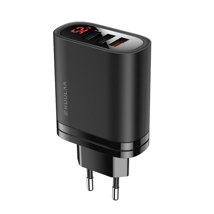 KUULAA KL-CD10 30W 5.4A 3 USB + QC3.0 Portable Digital Display Quick Charging Travel Charger Power Adapter, EU Plug(Black)