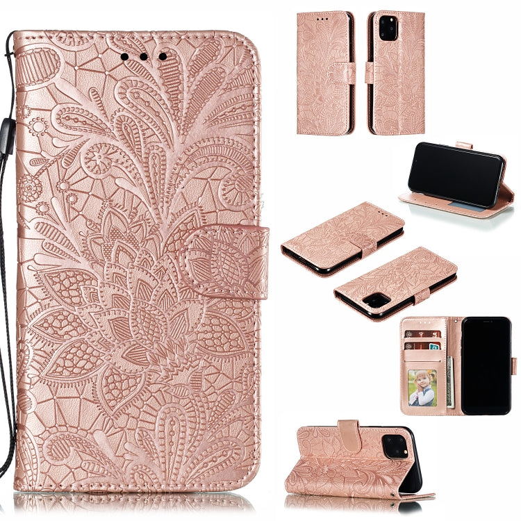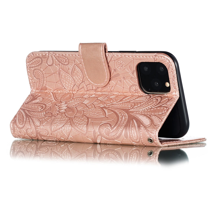 Lace Flower Horizontal Flip Leather Case with Holder & Card Slots & Wallet for iPhone 11 Pro Max(Rose Gold)