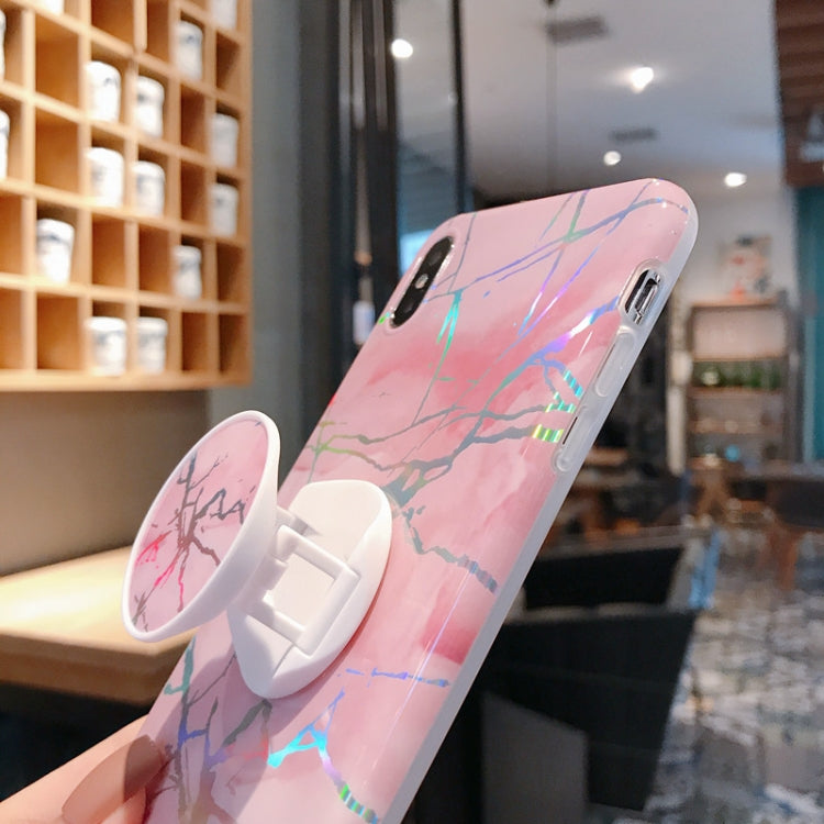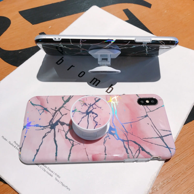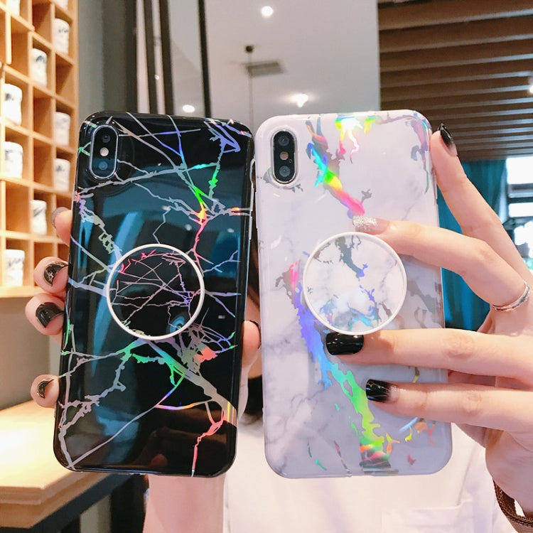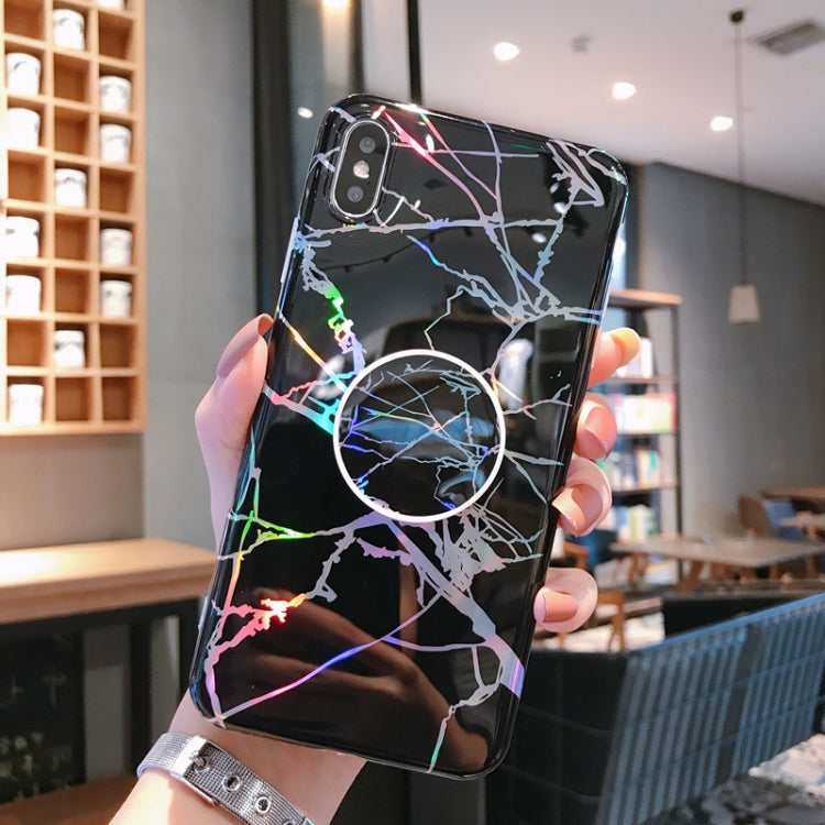 Laser Marble Anti-drop TPU Protection Back Cover for iPhone XR, with Folding Holder(Black)