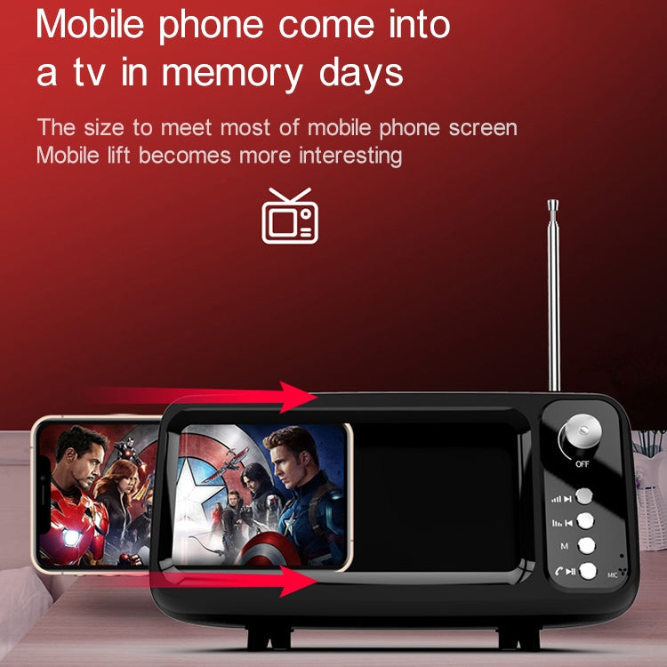 MB-8 Retro TV-shaped Subwoofer Bluetooth Speaker with Mobile Phone Stand Function, Supports Hands-free Calling & FM & U Disk & TF Card (Black)