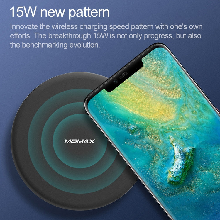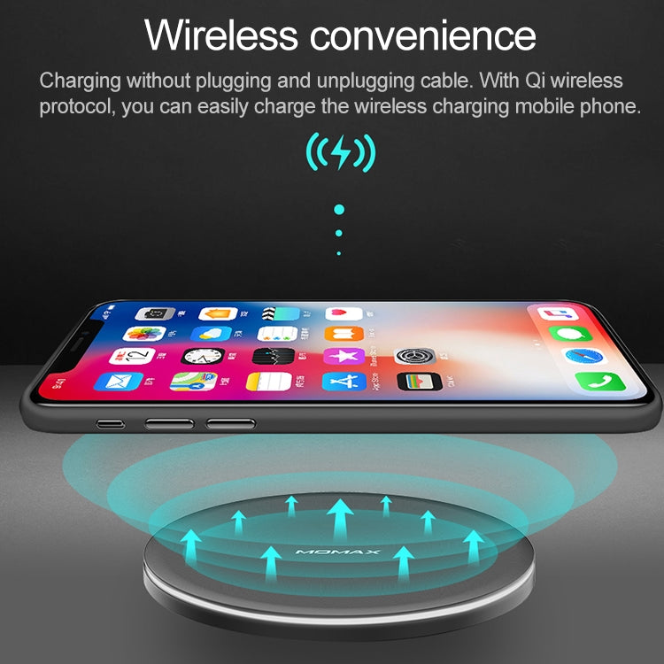 Momax Qi Standard Fast Charging Wireless Charger for iPhone XS Max / XR / Galaxy / Huawei / Xiaomi(Black)