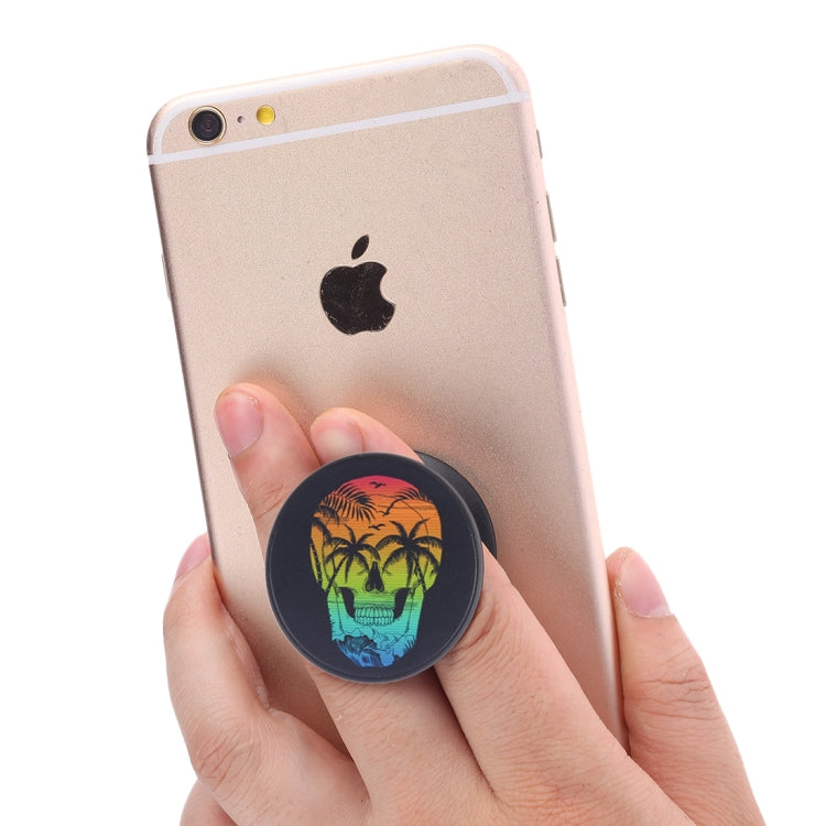 Multi-Function Skull Coconut Tree Pattern Universal Phone Holder Expanding Stand Grip Clamp Rope Stand for Smartphones