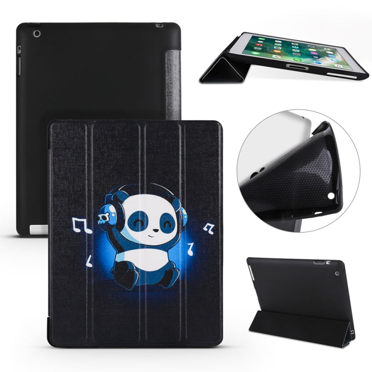 Music Panda Pattern Horizontal Flip PU Leather Case for iPad 4 / 3 / 2, with Three-folding Holder & Honeycomb TPU Cover