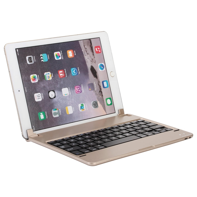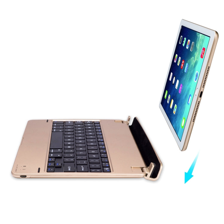 P1305 For iPad Air 2 & Air 1 / Pro 9.7 inch & 2017 iPad & 2018 iPad Plug-in Card Slot Plastic Bluetooth Keyboard Protective Cover with Stand Function (Gold)