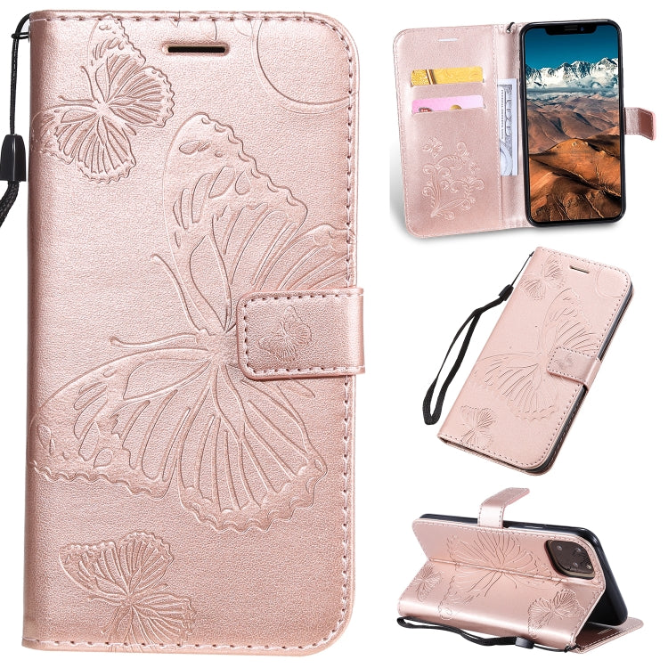 Pressed Printing Butterfly Pattern Horizontal Flip PU Leather Case with Holder & Card Slots & Wallet & Lanyard For iPhone 11 Pro Max(Rose Gold)