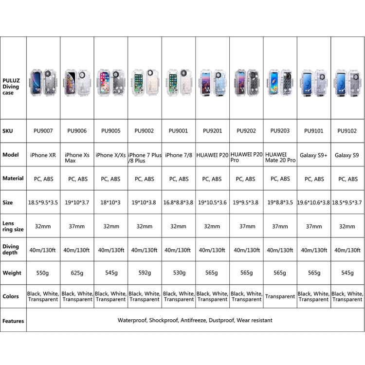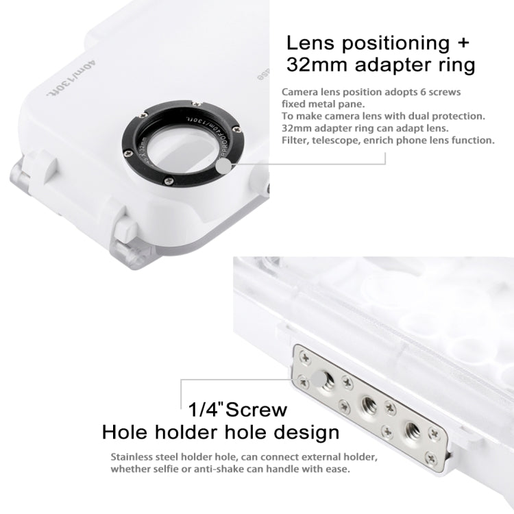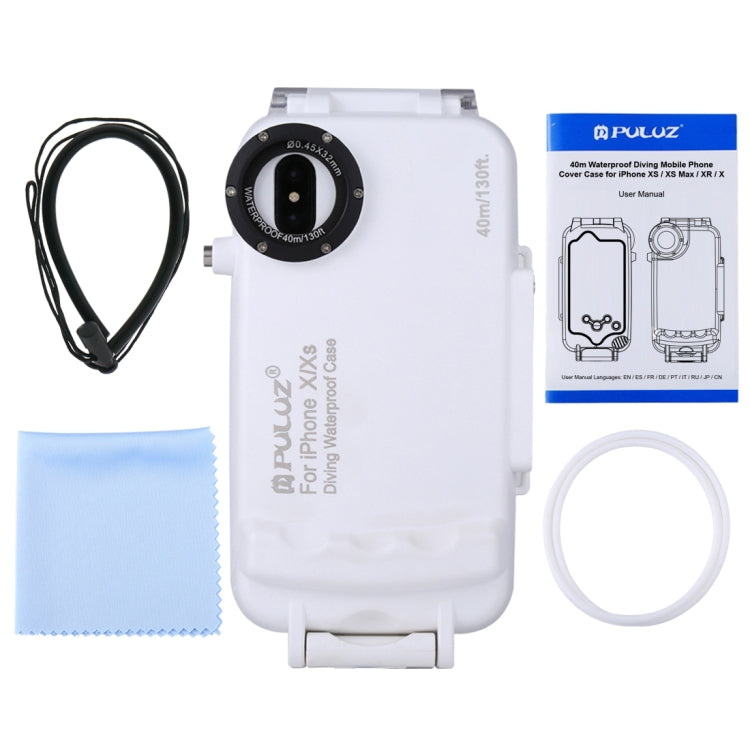 PULUZ 40m/130ft Waterproof Diving Housing Photo Video Taking Underwater Cover Case for iPhone X / XS(White)