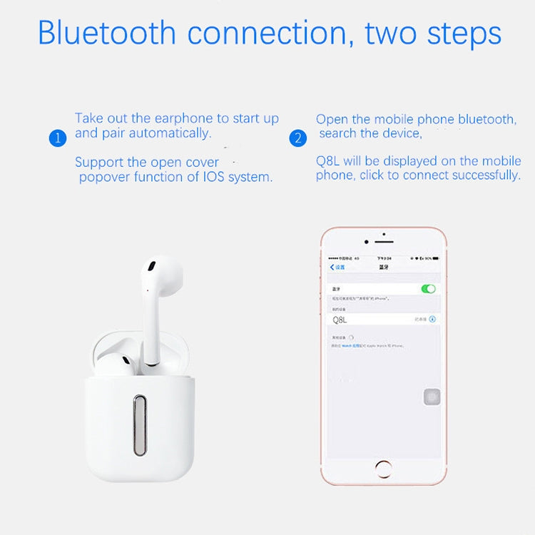 Q8L TWS Bluetooth 5.0 Touch Wireless Bluetooth Earphone with Magnetic Adsorption Charging Case, Supports Power Display & HD Calling(White)
