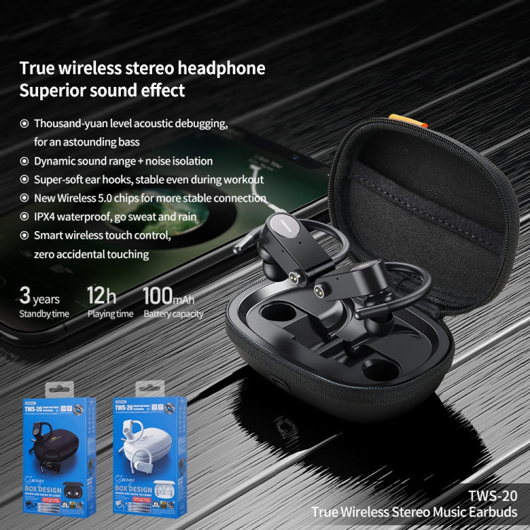 REMAX TWS-20 Bluetooth 5.0 True Wireless Sport Stereo Bluetooth Earphone(White)