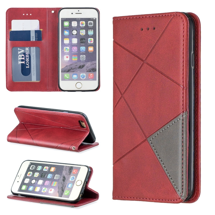 Rhombus Texture Horizontal Flip Magnetic Leather Case with Holder & Card Slots & Wallet For iPhone 6 & 6s(Red)