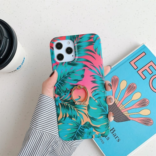 Shockproof IMD TPU Protective Case with Ring Holder For iPhone 11(Red Background Leaves)