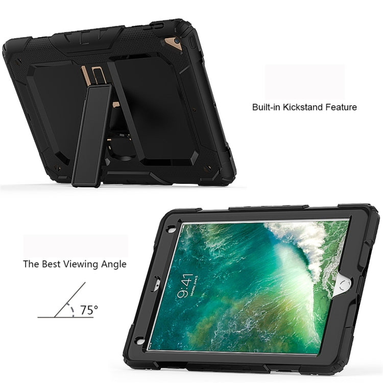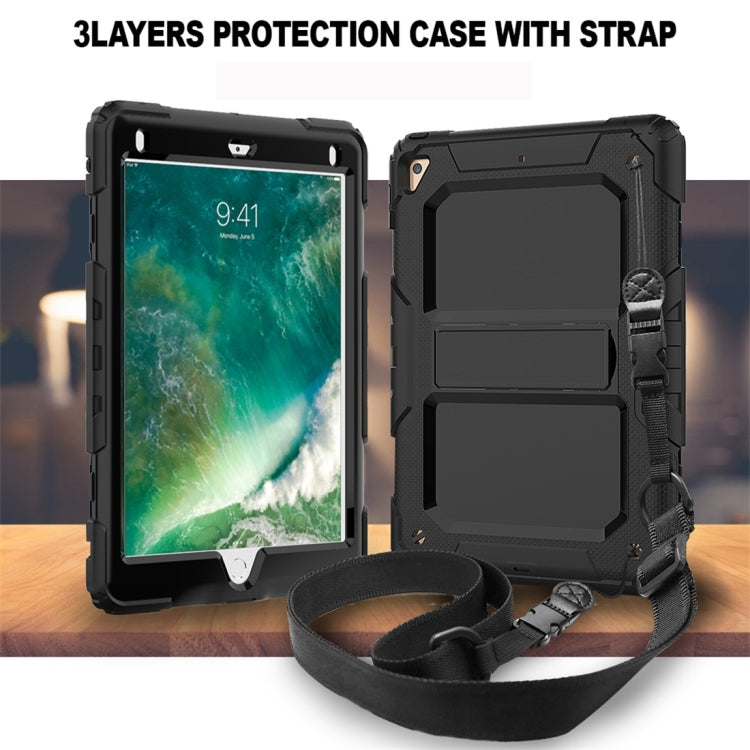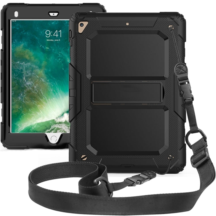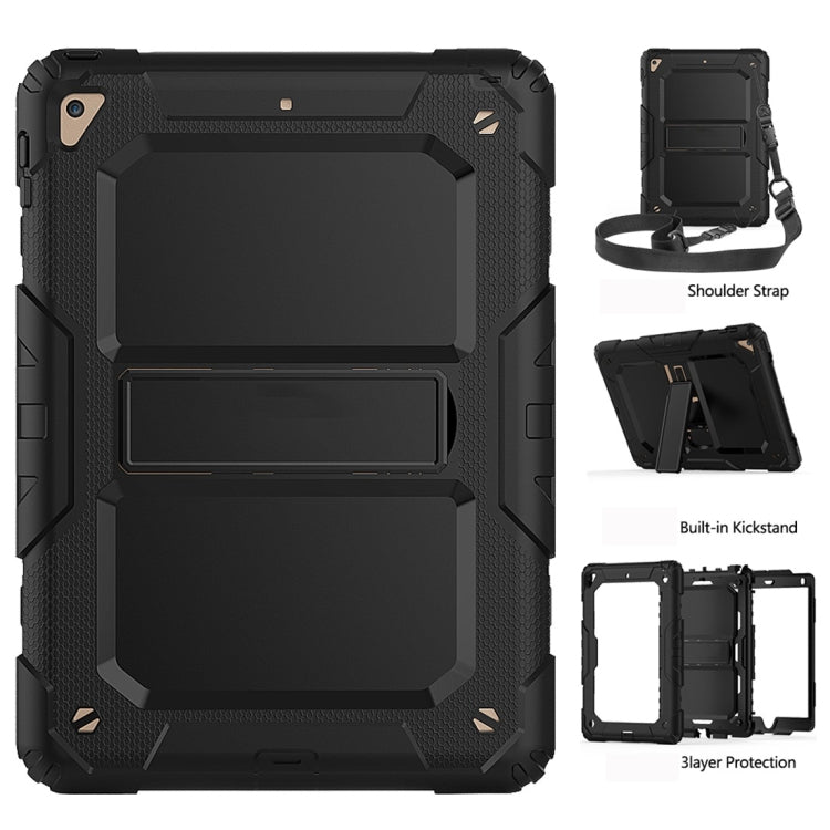 Shockproof PC + Silica Gel Protective Case for iPad 9.7 (2018), with Holder & Shoulder Strap (Black)