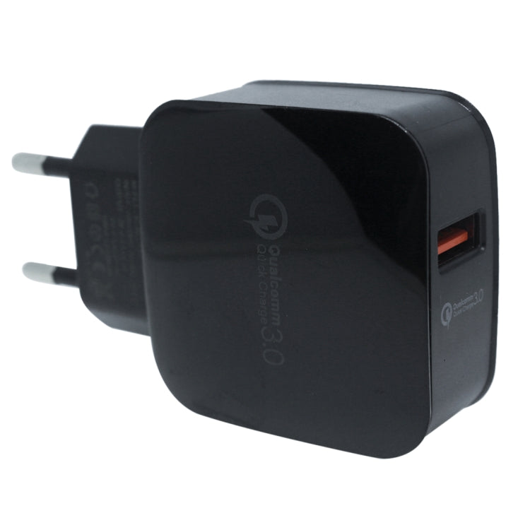 Single QC3.0 USB Port Charger Travel Charger, EU Plug(Black)