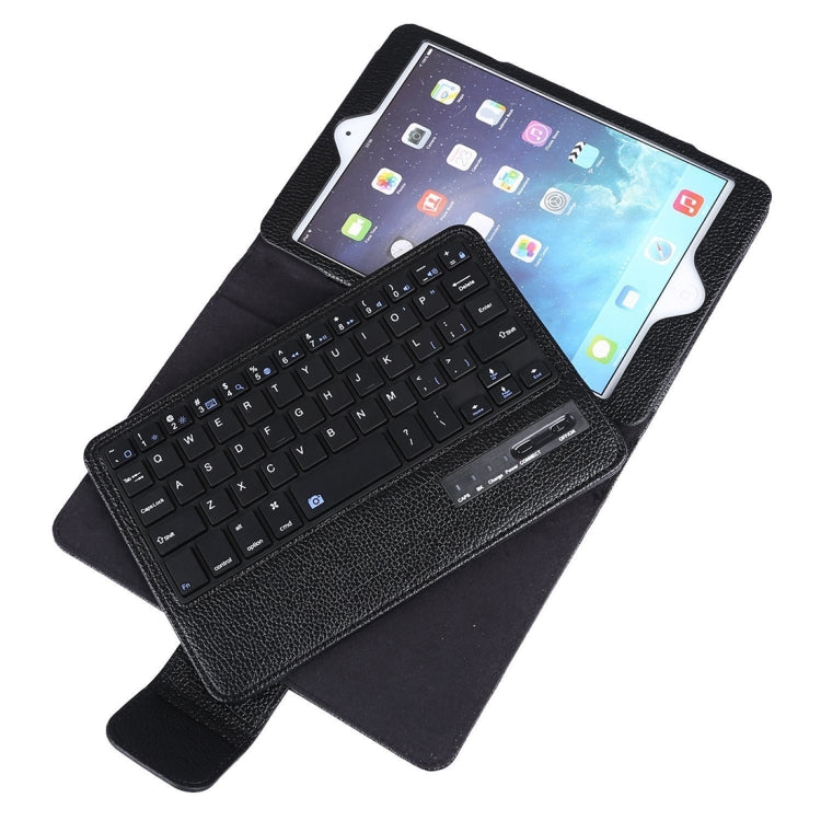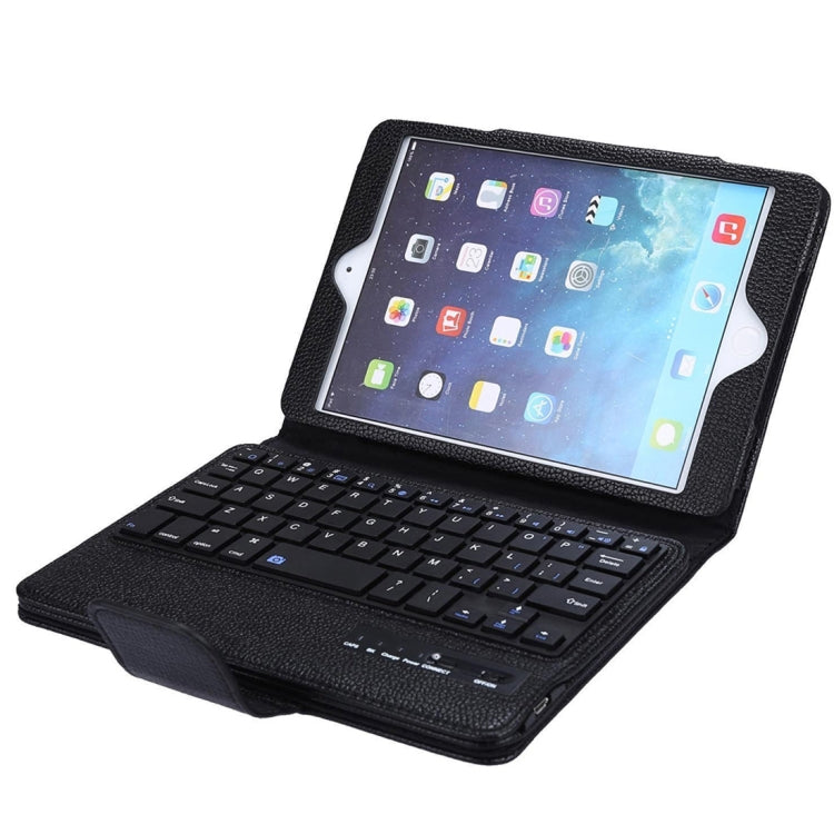 SPM01 For iPad mini 5 / 4 / 3 / 2 / 1 Litchi Texture Detachable Plastic Bluetooth Keyboard Leather Cover with Stand Function (Black)