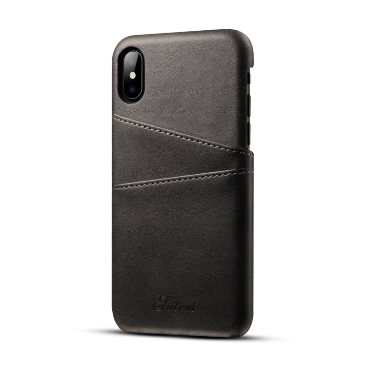 Suteni Calf Texture Protective Case for iPhone X / XS, with Card Slots (Black)