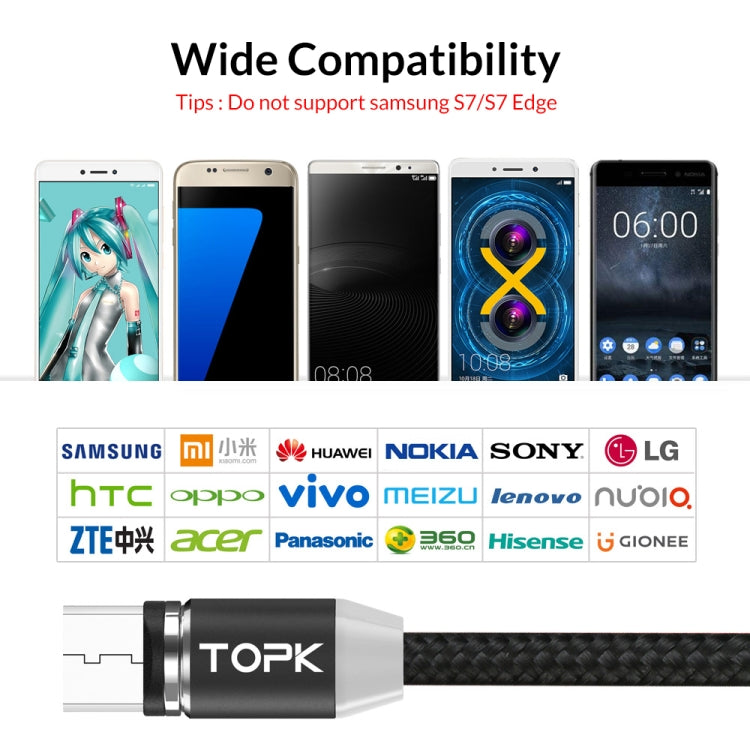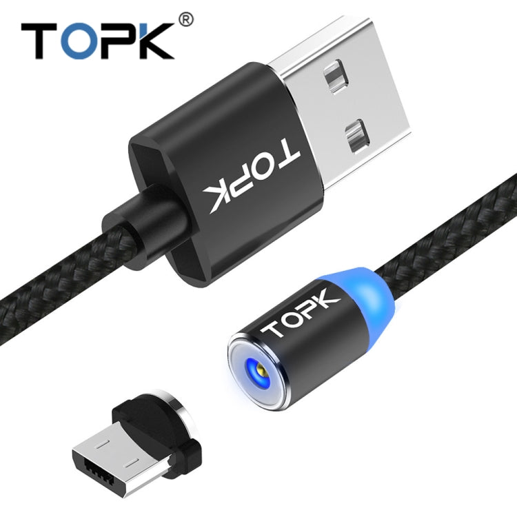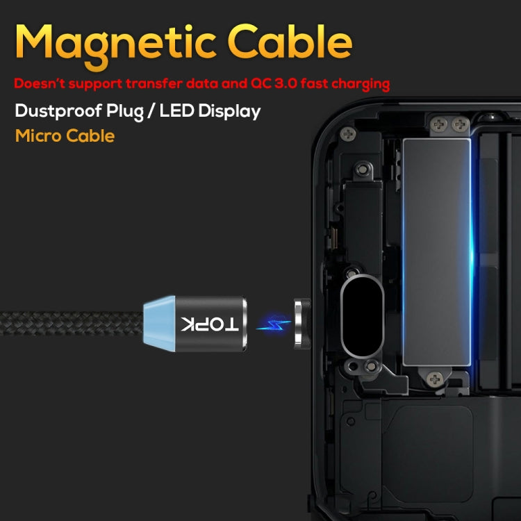 TOPK 1m 2.4A Max USB to Micro USB Nylon Braided Magnetic Charging Cable with LED Indicator(Black)