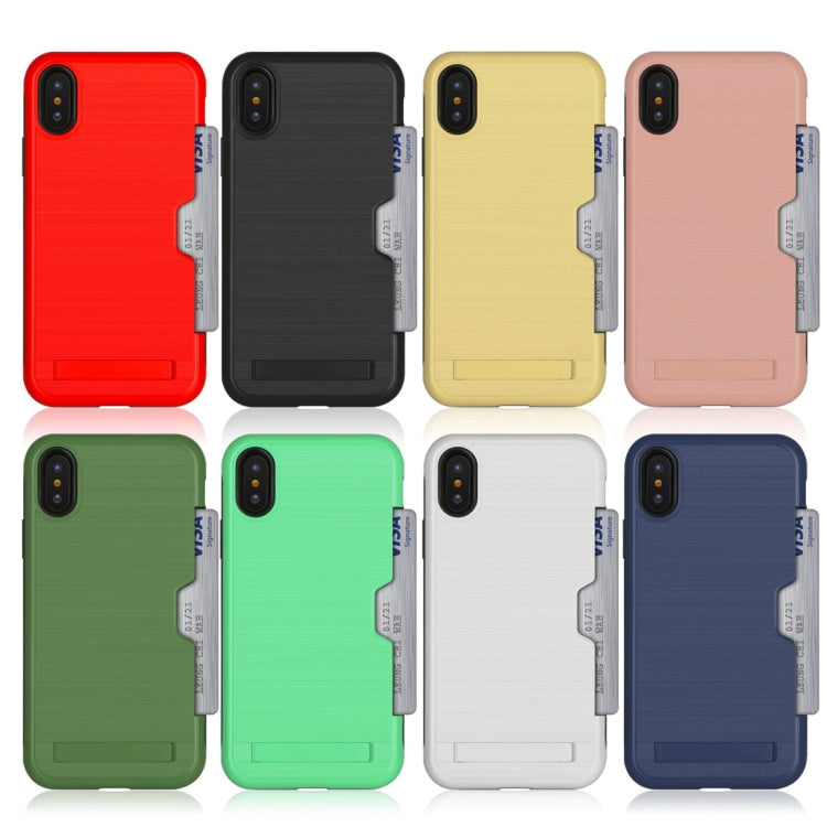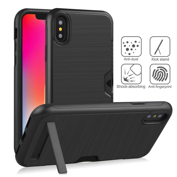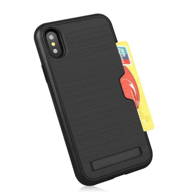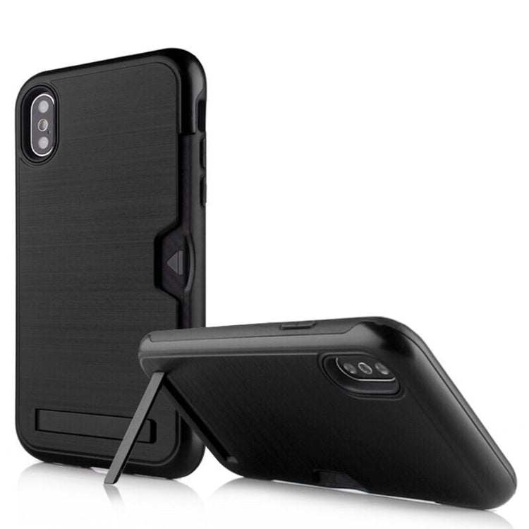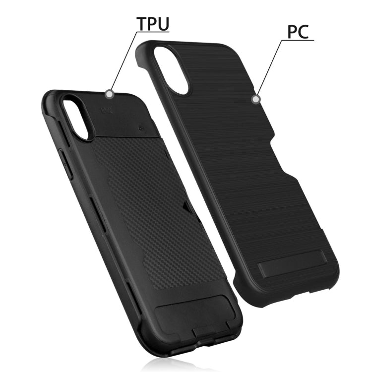 Ultrathin TPU + PC Protective Case for iPhone X / XS, with Card Slot & Holder(Black)