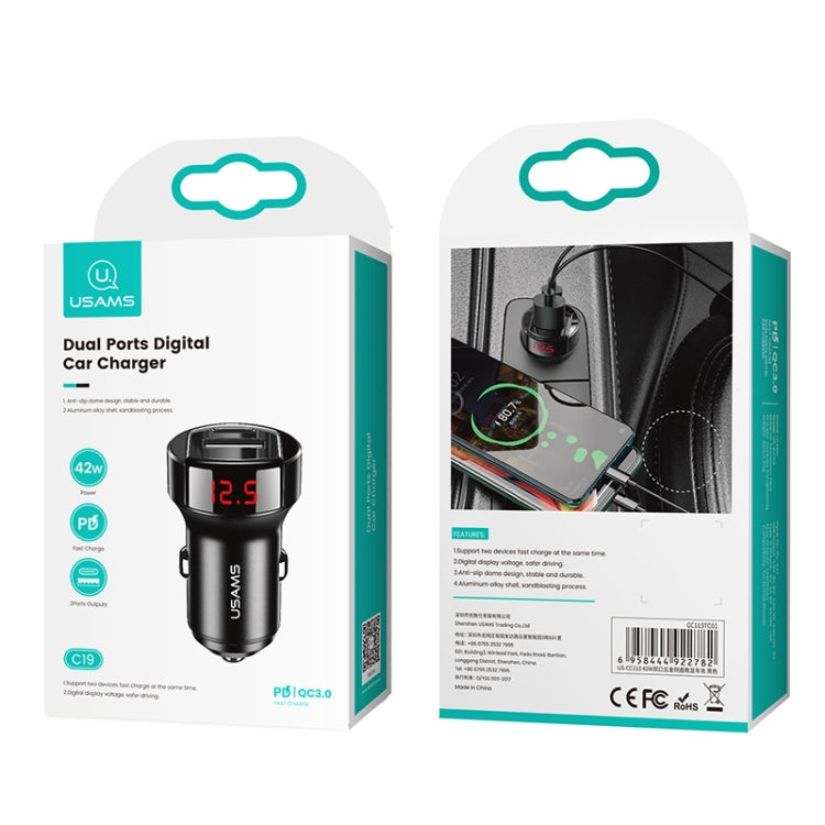 USAMS US-CC113 C19 42W Dual Ports Digital Display Car Charger (Black)