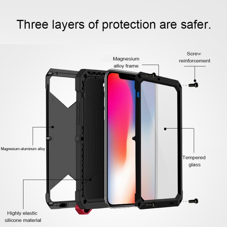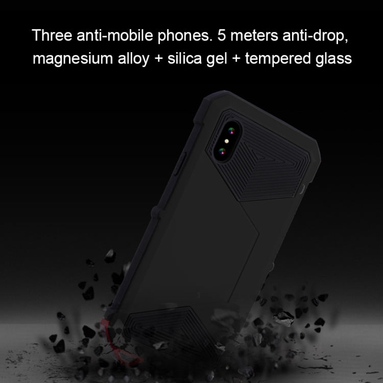 V8 Waterproof Dustproof Shockproof Aluminum Alloy + Tempered Glass + Silicone Case for iPhone XS / X (Black)