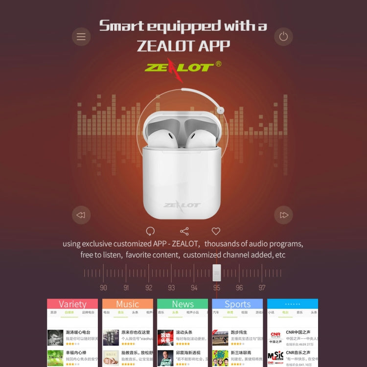 ZEALOT H20 TWS Bluetooth 5.0 Touch Wireless Bluetooth Earphone with Magnetic Charging Box, Support Stereo Call & Display Power in Real Time(White)