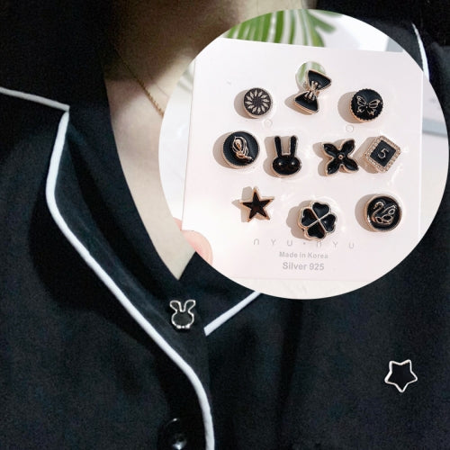 10 PCS 10 In 1 Pearl Anti-Glare Buckle Pin Skirt Waist Button Brooch Accessories Invisible Universal Button(Black Flower)