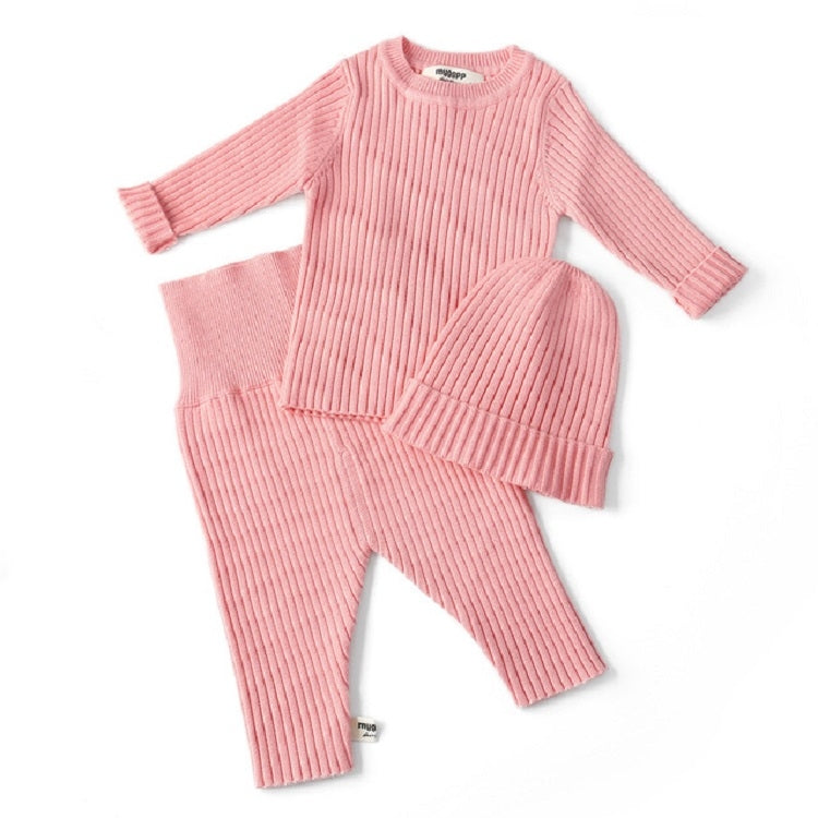 3 in 1 Winter Girl Baby Warm Bottoming Shirt + Bottoming Trousers + Hat Set, Height:80cm(Pink)
