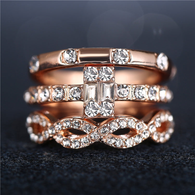 3PCS/Set Women Girls Fashion Geometry Crystal Rings, Ring Size:8