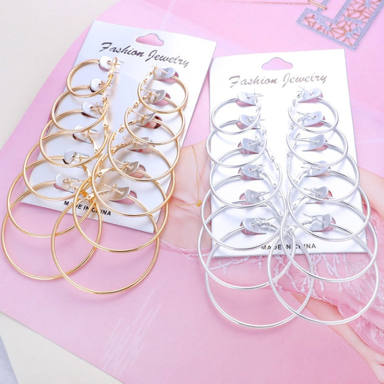 6 Pairs/Set Women Steampunk Fashion Circle Hoop Earrings(Glod)