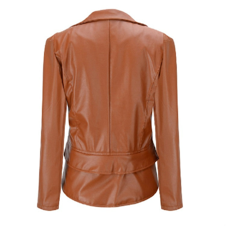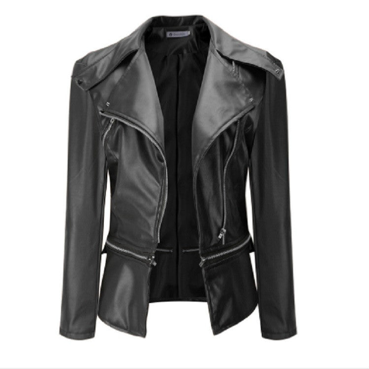 Autumn and Winter Women Motorcycle Jacket Zipper Two Wear Leather, Size:L(Black)